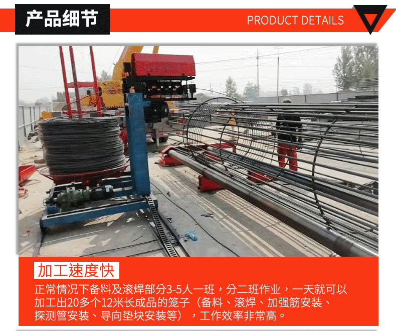山東交建數控鋼筋滾籠機加工速度快正常情況下備料及滾焊部分3-5人一班,分二班作業,就可以加工出20多個12米長成品的籠子(備料、滾焊、加強筋安裝、探測管安裝、導向墊塊安裝等),工作效率非常高。鋼筋籠繞筋機家繞筋機廠家加工可靠采用機械化作業,主筋、纏繞筋的間距均勻,鋼筋籠直徑一致,產品完全達到規范要求。機械體積小、重量輕、電耗少、節能鋼筋籠繞筋機 橋梁單雙筋鋼筋籠繞筋機 緊急制動現貨鋼筋籠繞筋機